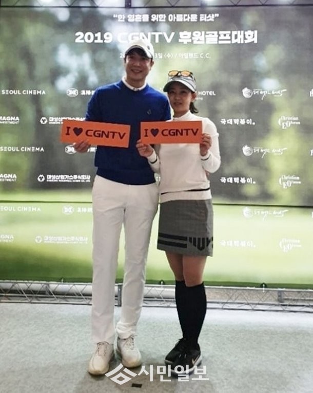 공개된 사진 속 조현재와 박민정은 골프복을 맞춰입고 슬로건을 들고 있는 모습으로 달달함을 자아냈다.