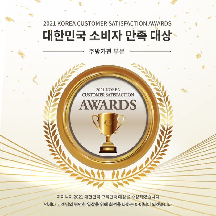 [시민일보 = 이승준] 생활가전 전문 브랜드 ‘주식회사 아이닉(inic, 대표 정건영)’이 ‘2021 대한민국 소비자만족대상’ 생활가전(에어프라이어) 부문에서 대상 수상의 영예를 안았다.