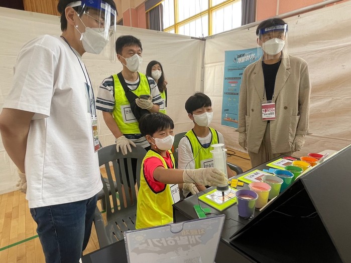 이날 행사는 AI 이미지 인식과 드론을 활용한 1마당‘감염자를 찾아라’, AI음성 인식과 햄스터 로봇을 활용한 2마당 ‘바이러스 확산을 막아라’, AI학습 방법을 활용한 3마당 ‘치료제를 개발하라!’, 언플러그드 보드게임을 활용한 4마당‘세균을 처치하라!’의 네 개 마당으로 꾸며져 학생들의 흥미와 관심을 자극해 적극적인 참여를 이끌어냈다.