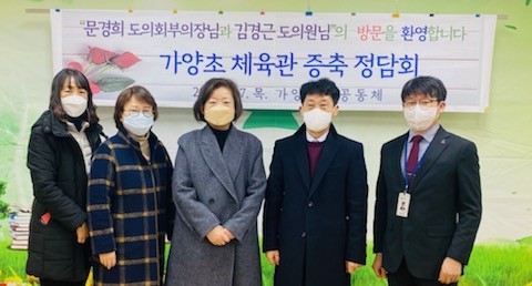 [수원=채종수 기자] 경기도의회 문경희 부의장(더불어민주당, 남양주2)과 김경근 도의원(더불어민주당, 남양주6)은 최근 남양주시 수동면 '가양초등학교 체육관 증축 정담회'에 참석했다.