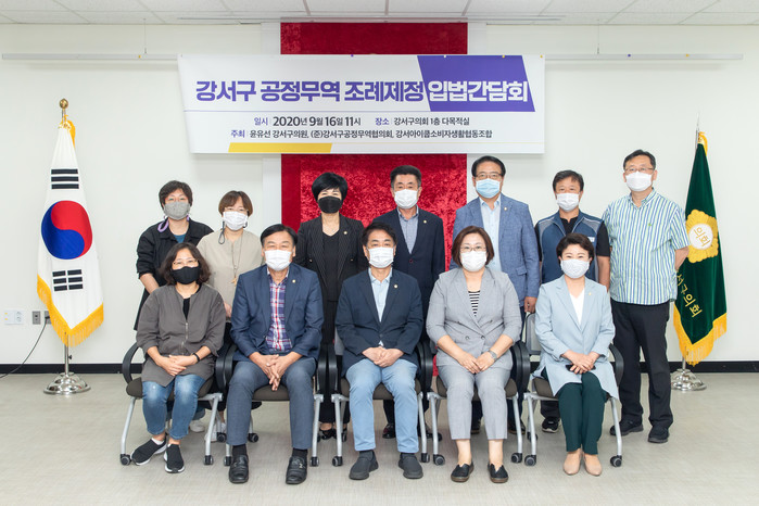 [시민일보 = 홍덕표 기자] 서울 강서구의회(의장 이의걸) 미래복지위원회 윤유선 의원이 16일 구의회 1층 다목적실에서 (주)강서구공정무역협의회, 강서아이쿱소비자생활협동조합과 함께 '강서구 공정무역 조례제정 입법 간담회'를 개최했다.