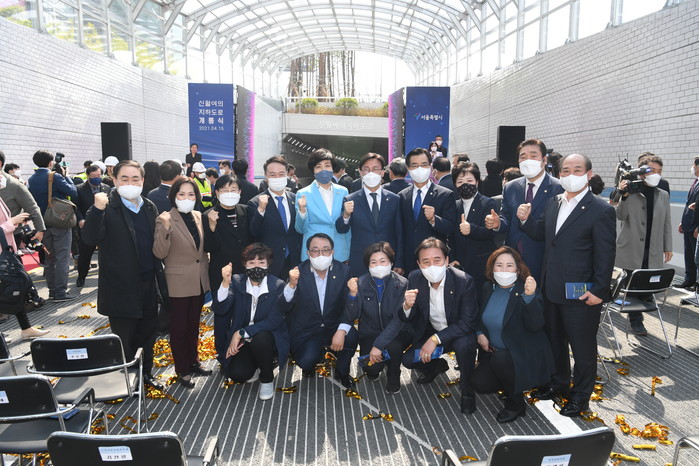 | ▲ '신월여의지하도로' 개통식에 참석한 영등포구의원들이 기념촬영을 하고 있다. (사진제공=영등포구의회) |