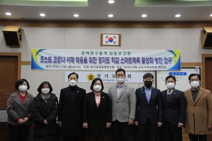 [수원=채종수 기자] 경기도의회 교육기획위원회의 연구단체 경기교육정책연구회가 '포스트코로나 시대 대응을 위한 경기도 학교 스마트체육 활성화 방안 연구'를 주제로 약 3개월간 진행해온 정책연구용역의 최종보고회를 최근 개최했다.