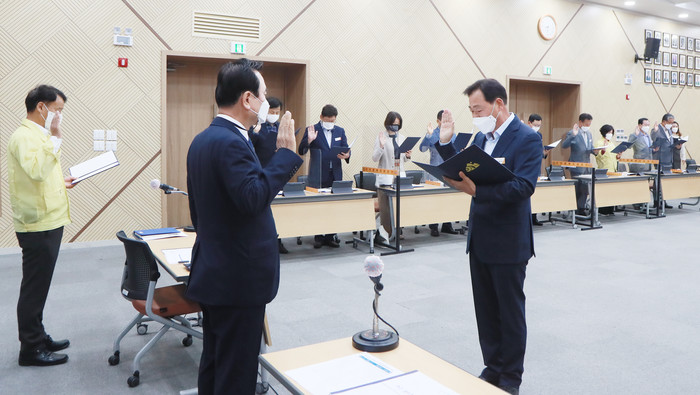 함양군은 10월 18일 오전 간부회의에 앞서 군민과 소통·공감하는 함양군 공무원의 혁신마인드·적극행정 조직문화 조성을 위한 실천 결의대회를 개최하였다.