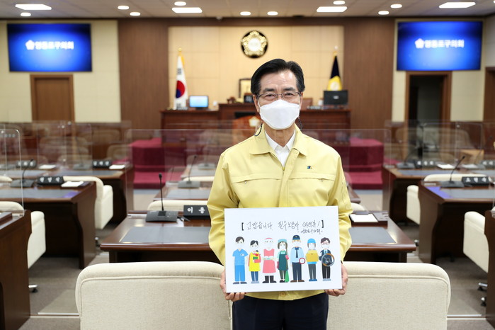 [시민일보 = 여영준 기자] 서울 영등포구의회 고기판 의장이 최근 필수노동자에게 감사를 전하는 ‘고맙습니다. 필수노동자’ 릴레이 캠페인에 동참했다.