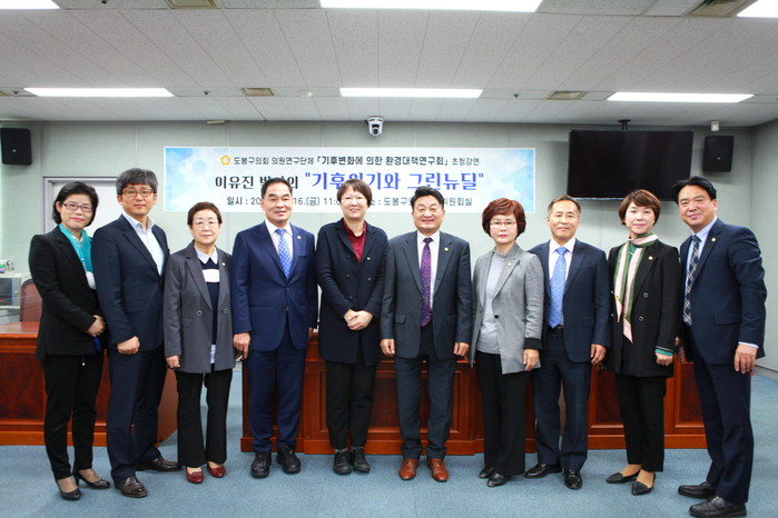 [시민일보 = 여영준 기자] 서울 도봉구의회(의장 박진식) 의원 연구단체인 ‘기후변화에 의한 환경대책연구회’가 최근 의회 3층 제1위원회실에서 '기후위기와 그린뉴딜'을 주제로 초청강연을 열었다.