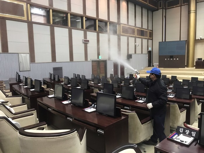 [수원=채종수 기자] 경기도의회가 올해 첫 회기를 앞두고 신종 코로나바이러스 감염증(우한 폐렴) 확산 방지를 위해 의회 건물 전체를 대상으로 특별방역을 실시했다.