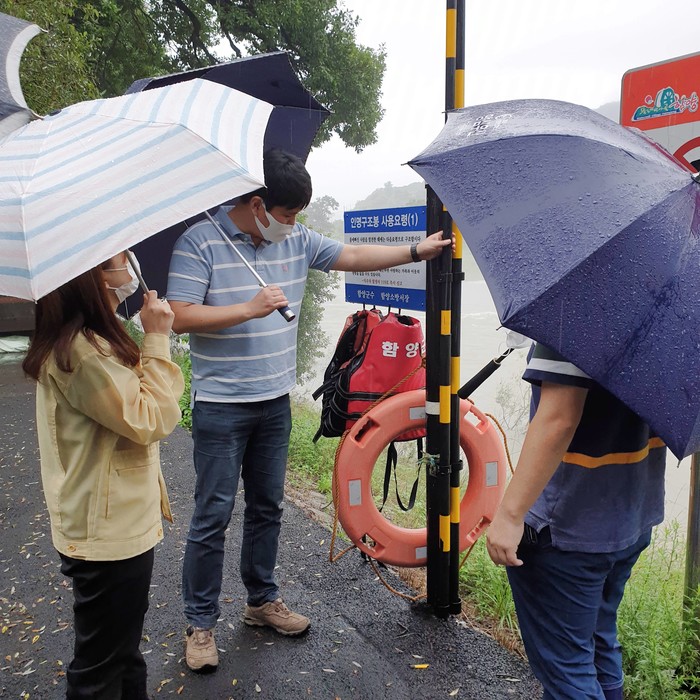 이번 현장점검에는 경남도 점검자를 비롯해 군청 공무원이 동행하여 물놀이 지역안전시설물(인명구조함, 경고표지판, 현수막 등) 정비 여부와 물놀이 안전요원 배치운영 등 전반적인 안전관리 상태를 점검했다.