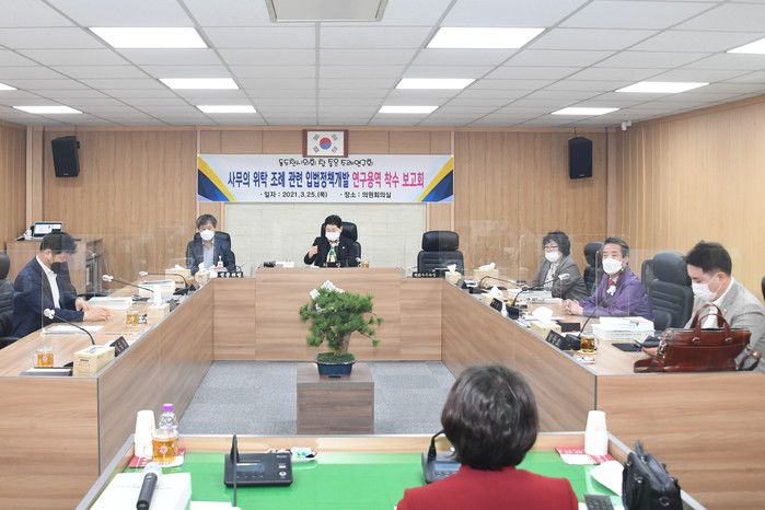 [동두천=김경진 기자] 경기 동두천시의회 의원연구단체인 ‘참 좋은 조례연구회’가 최근 의원 회의실에서 동두천시 사무 위탁에 관한 조례 입법정책개발 연구 용역 착수보고회를 개최했다.