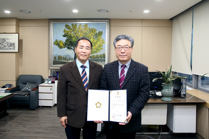 | ▲ 이태용 의장(왼쪽)이 최민수 입법고문을 위촉한 후 기념촬영을 하고 있다. (사진제공=도봉구의회) |