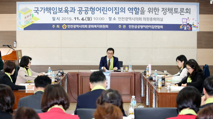 [인천=문찬식 기자] 인천시의회 문화복지위원회는 4일 ‘국가책임보육과 공공형어린이집의 역할을 위한 정책 토론회’를 개최했다.