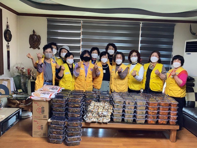 경기 양평군 양서적십자봉사회는 최근 소외계층 70가구에 직접 만든 고추장불고기 등 반찬 5종과 간식·떡을 전달하며 위로와 안부를 전했다. 사진은 이날 회원들이 전달할 음식 준비를 마치고 기념촬영을 하는 모습. (사진제공=양평군청)