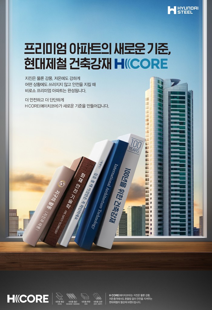 지난 2017년 출시한 고성능 건축용 강재 브랜드 H CORE는 지진의 충격을 흡수해 지각의 흔들림에 유연하게 대응하는 성능을 지닌 제품으로, 일반강재 대비 높은 에너지 흡수력·충격인성·용접성 등의 특성을 지니고 있다. 이를 건축물에 적용할 경우 외부 충격으로부터 거주자의 안전도를 높이는 효과를 갖고 있는 것이 특징이다.