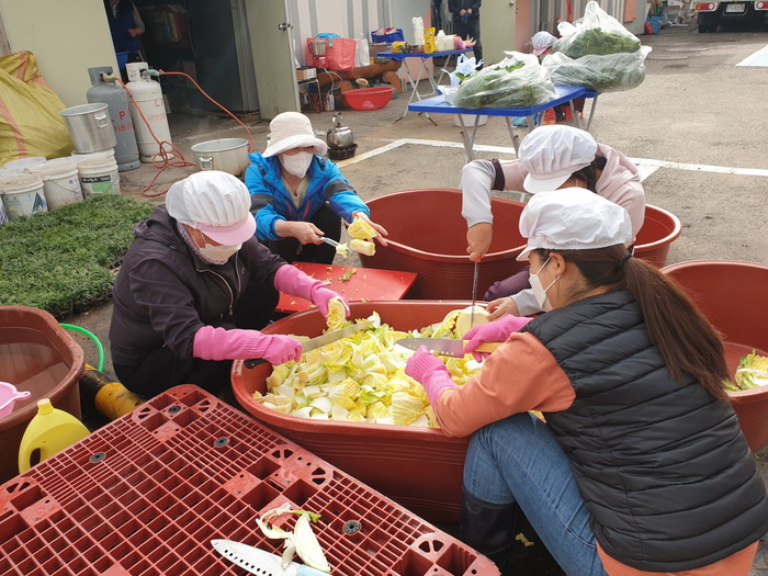 경기 안산시 상록구 월피동 바르게살기위원회는 지난 17일 ‘어려운 가정 반찬나누기’ 사업을 하고 밑반찬을 만들어 지역내 지역아동센터 및 취약계층 50가정에 전달했다. 사진은 이날 봉사자들이 반찬을 만들고 있는 모습. (사진제공=안산시청)