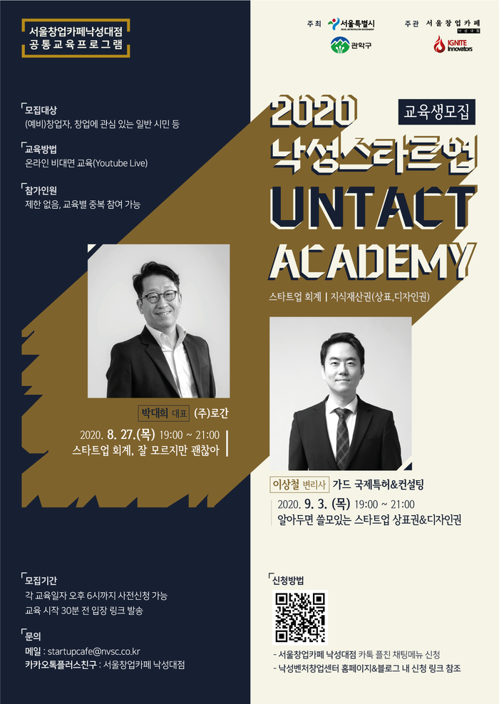 오는 9월3일에는 ‘알아두면 쓸모있는 스타트업 상표권&디자인권’이라는 제목으로 가드국제특허&컨설팅 이상철 변리사가 스타트업 지식재산권에 대한 강의를 이어갈 예정이다.