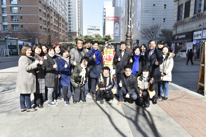 | ▲ 헌혈 동참 홍보를 하고 있는 양천구의원들. (사진제공=양천구의회) |