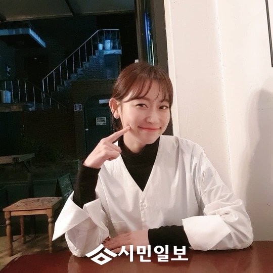 사진 속 김슬기는 볼을 찌르며 환히 웃고 있다.
