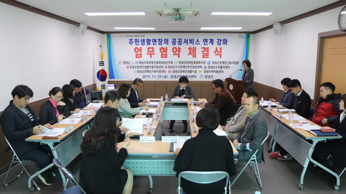 군은 11월 29일 창녕군자원봉사센터에서 성혜경 주민복지과장, 김성길 창녕군장애인종합복지관장 등 장애인 관련 시설·단체 대표 8명과 하승범 창녕지역자활센터장이 참석한 가운데 ‘주민생활현장의 공공서비스 연계강화 업무협약’을 체결하고, 이어‘사회복지시설·단체 간담회’를 가졌다.