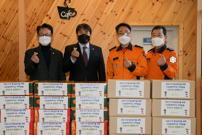 [부천=문찬식 기자] 경기 부천시의회가 연말을 맞아 송년회 대신 코로나19 대응 격무부서 및 관련 기관을 방문해, 코로나19 확산 방지를 위해 고분분투하고 있는 현장 근무자들을 위로했다.