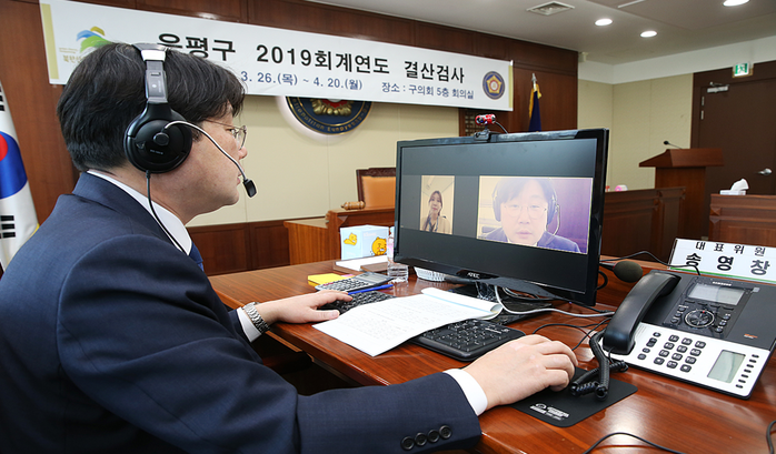 [시민일보 = 이대우 기자] 서울 은평구의회(의장 이연옥)가 ‘2019 회계연도 결산검사’를 온라인 화상회의 앱을 통해 진행해 코로나19 종식을 위한 ‘사회적 거리두기’에 적극 동참한다.