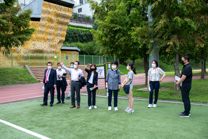 | ▲ 강남구의회 복지도시위원회 위원들이 대치유수지 체육공원 현장을 점검 하는 모습. (사진제공=강남구의회) |