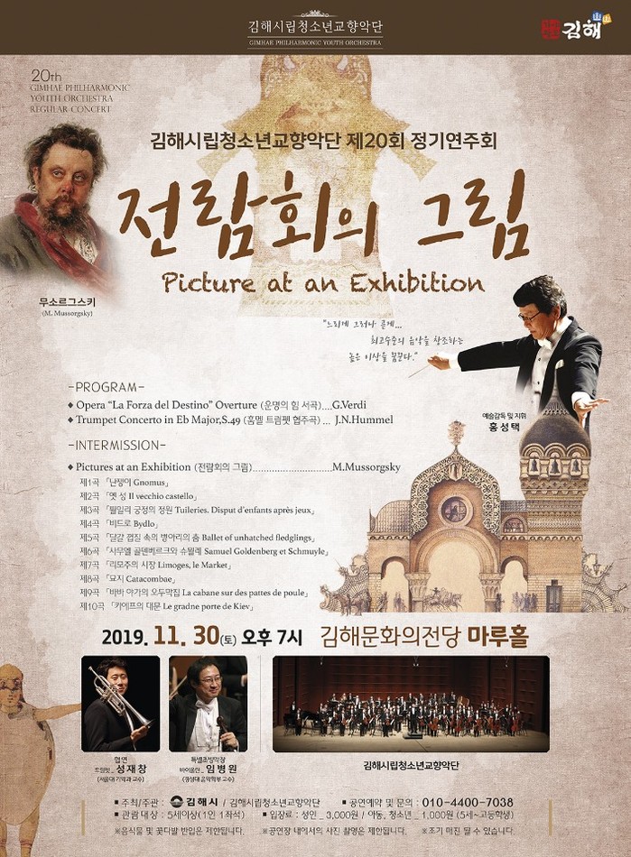 김해 시립청소년교향악단이 오는 11월 30일 저녁 7시 김해문화의전당 마루홀에서 제20회 정기연주회 ‘전람회의 그림’을 개최한다고 밝혔다.