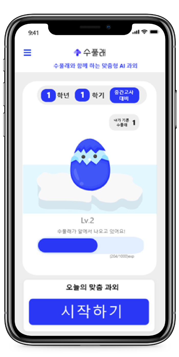 중학생들이 수학에 재미를 느낄 수 있도록 학습의 양과 진척도를 경험치 개념으로 표시해, 게임을 하듯 캐릭터를 기르고 만족도도 느껴볼 수 있다.