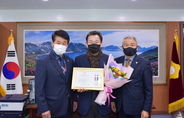 지방의정봉사상은 매년 지방의정발전에 공이 큰 의원을 선정하여 시상하는 상으로서, 이번 시상은 코로나19로 인해 전국 시·군·자치구의회 의장협의회장을 대신해 합천군의회 의장실에서 배몽희 의장이 전달했다.