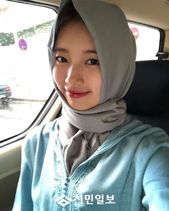 공개된 사진 속 수지는 히잡은 쓴 채 카메라를 바라보고 있다. 청순하고 단아한 그의 미모가 감탄을 자아낸다.