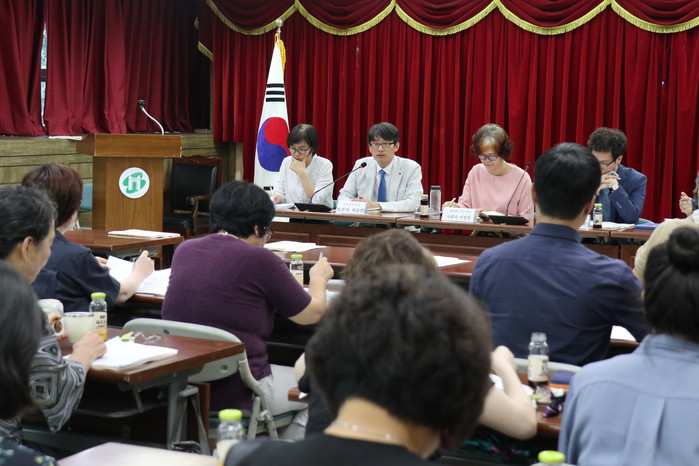 ▲ 최근 열린 '민·관협치 활성화 기본계획 수립 토론회'에 토론자로 참석한 차승연 의원이 협치 의원들의 의견을 청취하고 있다. (사진제공=서대문구의회) |