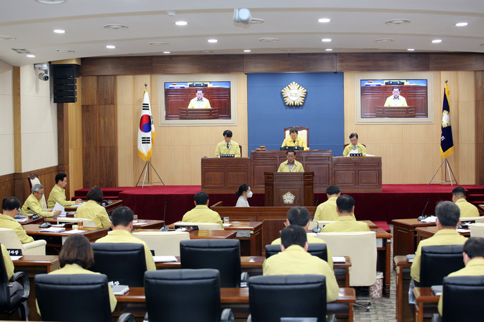 조정기 의장은 “코로나19 확산 방지를 위해 노력하는 군민들과 공무원들에게 감사의 인사를 전하며, 코로나19 사태가 장기간 이어짐에 따라 지역경제가 붕괴위기에 직면해 있고, 공동체 모두가 어렵고 힘든 시기를 보내고 있는 만큼, 집행부에서는 이 위기를 잘 극복할 수 있도록 모든 행정력을 집중해 효과적인 대안 마련과 적극적인 추진을 당부하면서 의회에서도 군민의 건강과 안전을 지키고 위기 극복을 위해 전력을 다하겠다”고 말했다.