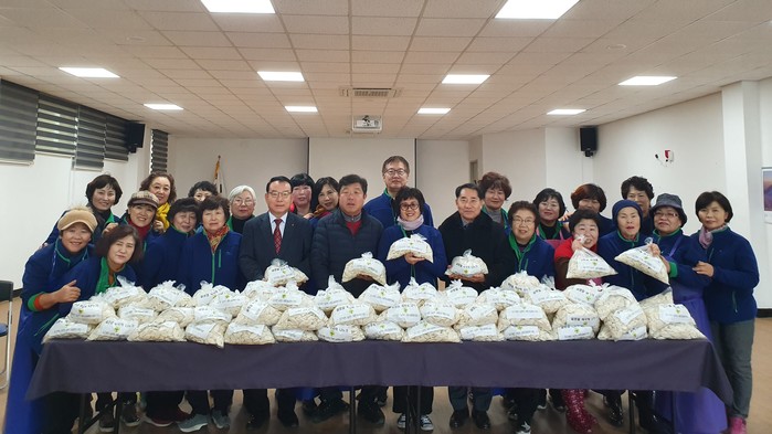 경기 이천시 모가면 새마을협의회는 최근 모가면 행정복지센터에서 ‘설맞이 떡국떡 나눔’ 행사를 개최하고 지역내 노인들의 건강과 행복을 기원하는 의미로 떡국떡 160kg(1200만원 상당)을 기탁했다. 사진은 기념촬영을 하는 모습. (사진제공=이천시청)
