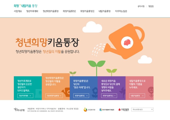 모두 5분야의 사업이 추진된다. 희망키움통장(I), 내일 키움 통장, 청년 희망키움통장은 2~11월까지 매월 모집한다.