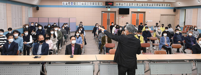 이번 교육은 경남대학교 스포츠과학과 김재구 교수를 초빙해 「건강한 삶, 행복한 삶」이라는 주제로 진행됐으며, 장기화된 코로나19로 인해 지친 공직자들에게 몸과 마음을 치유하고 행복한 삶을 가꾸며 활력 넘치는 직장문화 조성을 위해 마련됐다.