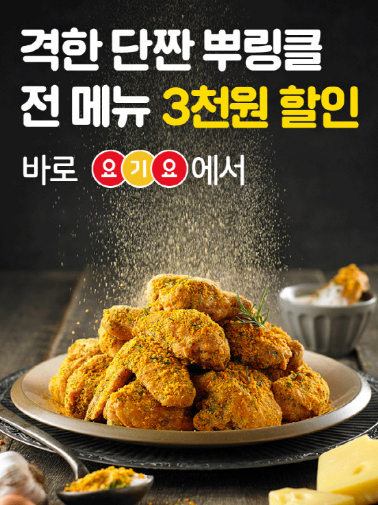 bhc치킨은 오는 6일까지 총 6일간 요기요 주문 시 전 메뉴 3000원 할인 혜택을 제공한다.