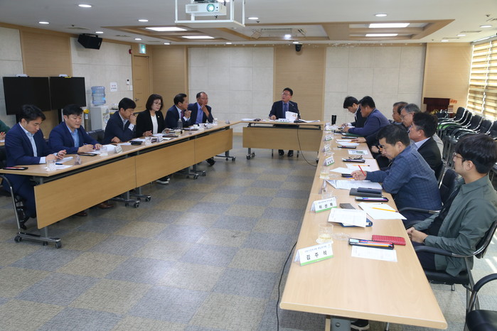 ▲ '공동주택 지원 개선방안 연구회' 의원들이 회의를 하고 있다. (사진제공=수원시의회) |