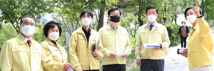 | ▲ 재난안전대책 행정사무조사 특별위원회 의원들이 현장을 살펴 보는 모습. (사진제공=성동구의회) |