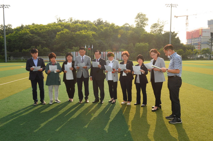 특히 위원들은 중랑구립잔디운동장에서 노후된 가설건축물 및 본부석 등 시설개선공사에 대한 추진현황을 보고받은 후 주차문제 및 시설개선 방향 등에 대해 질의했다.