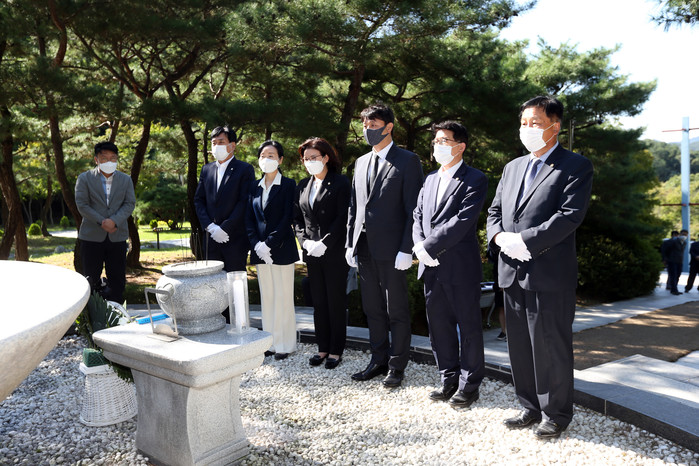 이날 위령탑 참배에는 조석환 의장과 김기정 부의장, 양진하 기획경제위원장, 이현구 도시환경위원장, 이미경 복지안전위원장, 황경희 의원 등이 참여했다.