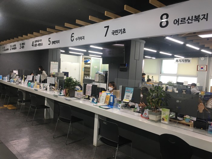 | ▲ 동 주민센터 민원창구에 설치된 투명 칸막이 모습. (사진제공=강북구청) |