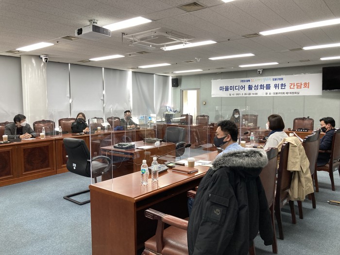 [시민일보 = 여영준 기자] 서울 도봉구의회(의장 박진식)가 최근 의회 3층 제1위원회실에서 도봉구 마을미디어네트워크와 ‘마을미디어 활성화를 위한 간담회’를 열었다.