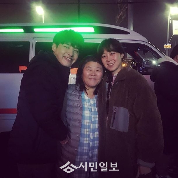 공개된 사진 속 그는 강하늘, 이정은과 함께 사진을 찍고 있는 모습으로 훈훈함을 자아냈다.