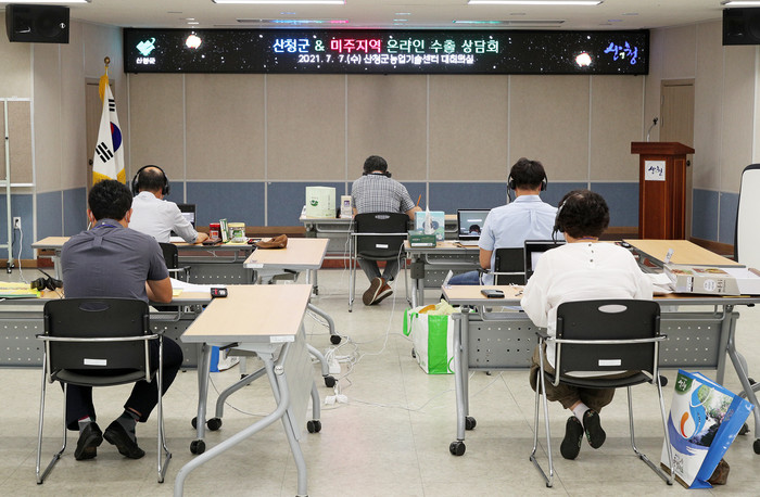 군은 지난 7일 하루 동안 산청군농업기술센터 대회의실에서 올해 두 번째 온라인 수출상담회를 가졌다고 8일 밝혔다.