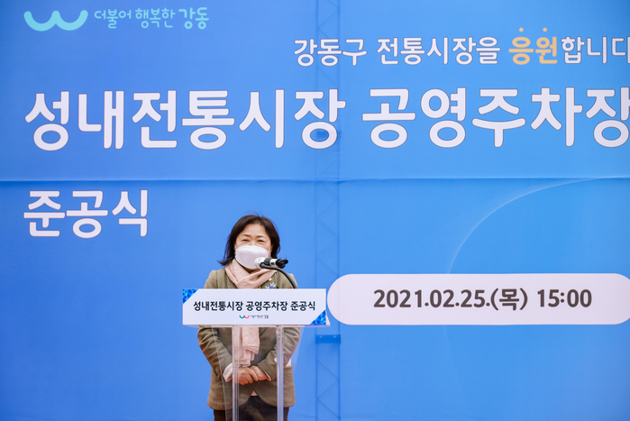 이날 준공식은 성내전통시장의 공영주차 공간 28면 조성을 축하함과 동시에 강동구 전통시장을 응원하기 위해 진행된 것으로, 주차공간의 확대로 전통시장을 찾는 이용객의 편의성은 한층 향상되고 코로나19로 침체된 지역경제에는 활력이 불어넣어질 전망이다.