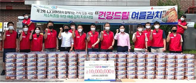 | ▲ LX MMA(공장장 김창호)가 18일 후원금 1000만원을 마련해 여름김치(배추김치)를 담아 지역사회에 건강과 희망을 배달하며 나눔을 실천했다.(출처=여수시청) |