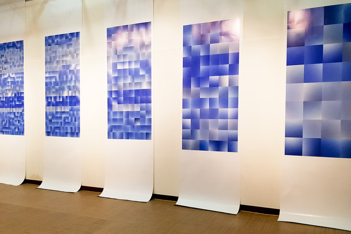 이번 사진전에 출품한 작품은 창문에서 바라보는 풍경에서 모티브를 얻어 구름 한 점 없이 청명한 하늘을 주제로 한 장, 한 장을 고화질로 촬영한 것이다. 하지만 마치 하나의 디지털 사진을 확대했을 때 픽셀이 보이는 것처럼 여러 장의 사진을 배열하여 다시 한 장으로 다양한 하늘을 재해석 했다.
