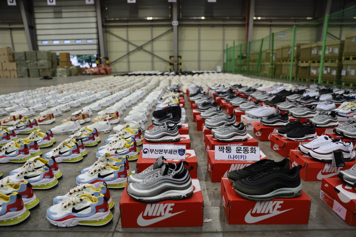 관세청 부산본부세관(세관장 김재일)은 나이키, 구찌, 발렌시아가 등 해외유명 브랜드 위조 상표 운동화 2,000켤레(시가 17억 상당)를 밀수입하여 오픈 마켓에서 정품인 것처럼 판매한 일당 3명을 검거하고, 그 중 주범 A씨를 구속 송치하였다.현제 주범A씨는 구속 수감 중 이다