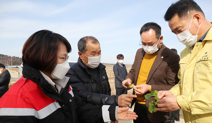[서산=최진우 기자] 이연희 충남 서산시의장은 이수의 부의장, 가충순 의원과 함께 해미면에 위치한 시설채소 재배단지를 방문해 작황을 확인하고 애로사항을 청취하는 등 신년 현장의정 행보를 펼쳤다.