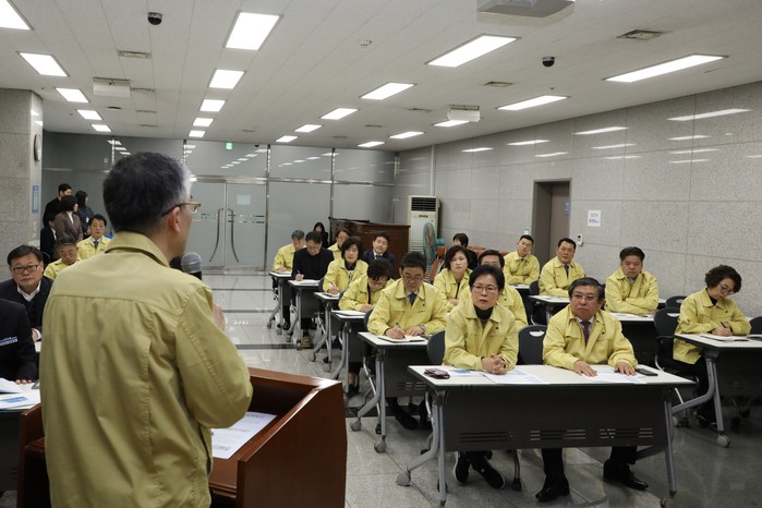 이날 구의회는 오상철 구 보건소장으로부터 신종 코로나바이러스 국내외 발생현황, 감염경로, 감염 예방행동수칙, 대응상황과 향후 계획 등에 대해 보고받았다.