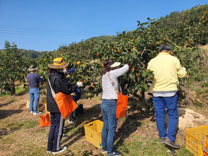 이번 농촌 일손 돕기는 코로나19 장기화에 따른 농촌의 인력 수급 문제를 해소하고 농번기 수확 철을 맞아 단감 수확이 한창인 하남읍에서 일손이 부족한 농가를 지원하기 위해 마련됐다.
